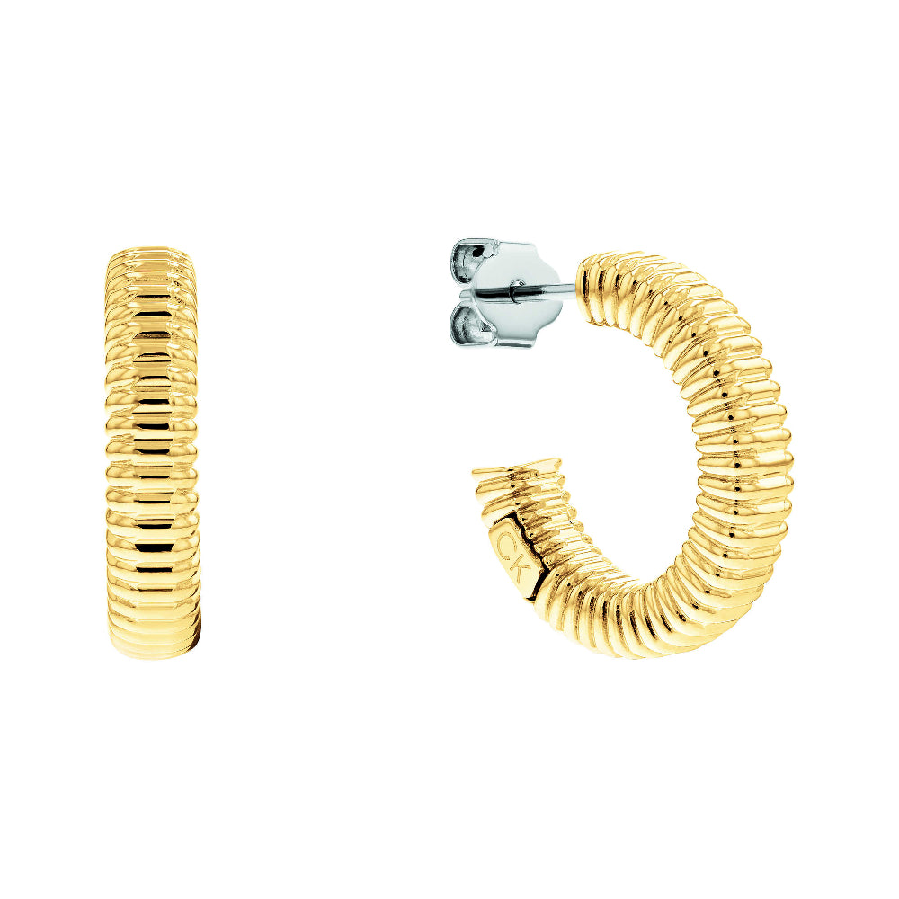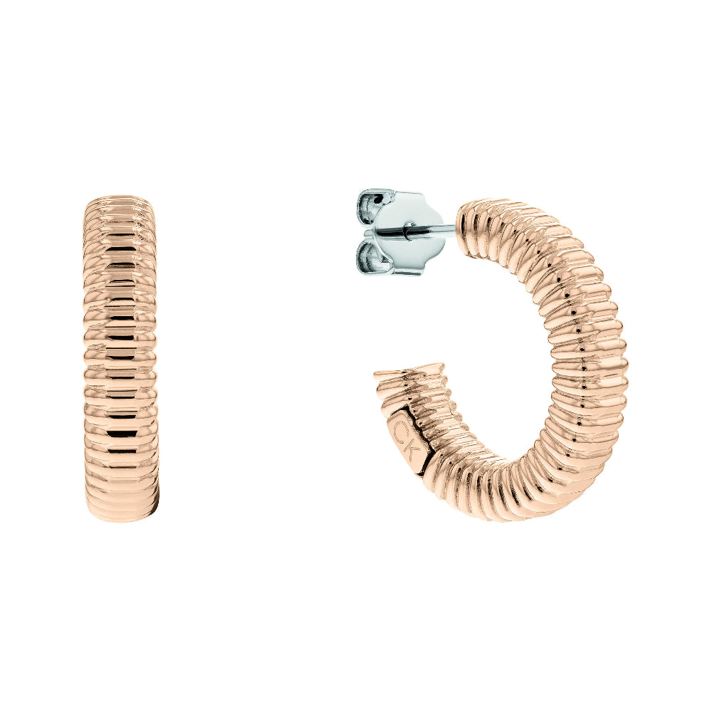 Orecchini Calvin Klein collezione Contemporary a cerchio aperto.