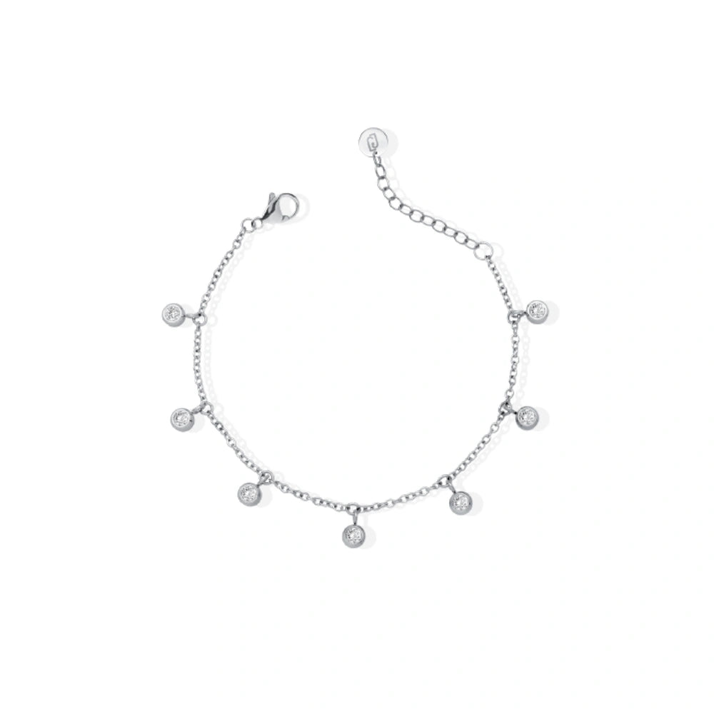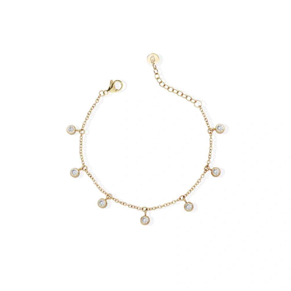 Elegante cavigliera in acciaio, disponibile nelle varianti gold o silver, arricchita da pietre luminose. Perfetta per aggiungere luce al tuo look estivo.