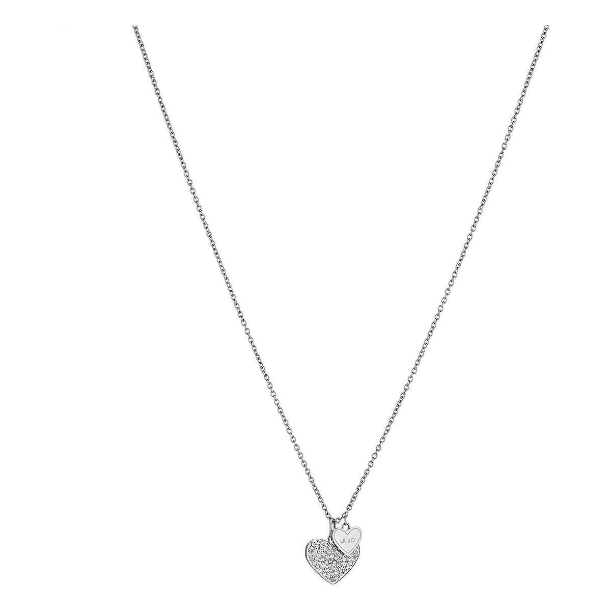 Collana in acciaio nichel free, charms a forma di cuori con brill. Chiusura con moschettone regolabile.