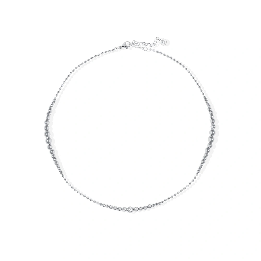 Collana in acciaio con pietre luminose: un accessorio elegante che illumina con sobrietà ogni outfit.