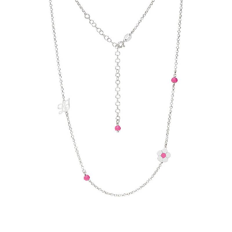 Liu Jo Collana Junior in argento con fiore e perline rosa