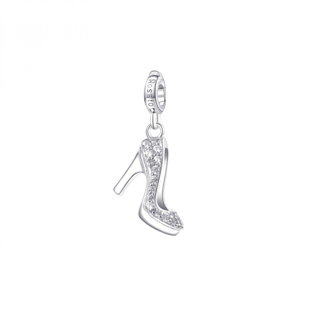 Rosato collezione Storie Scarpe e Borse charm Décolleté in Argento 925, smaltata con cubic zirconia.