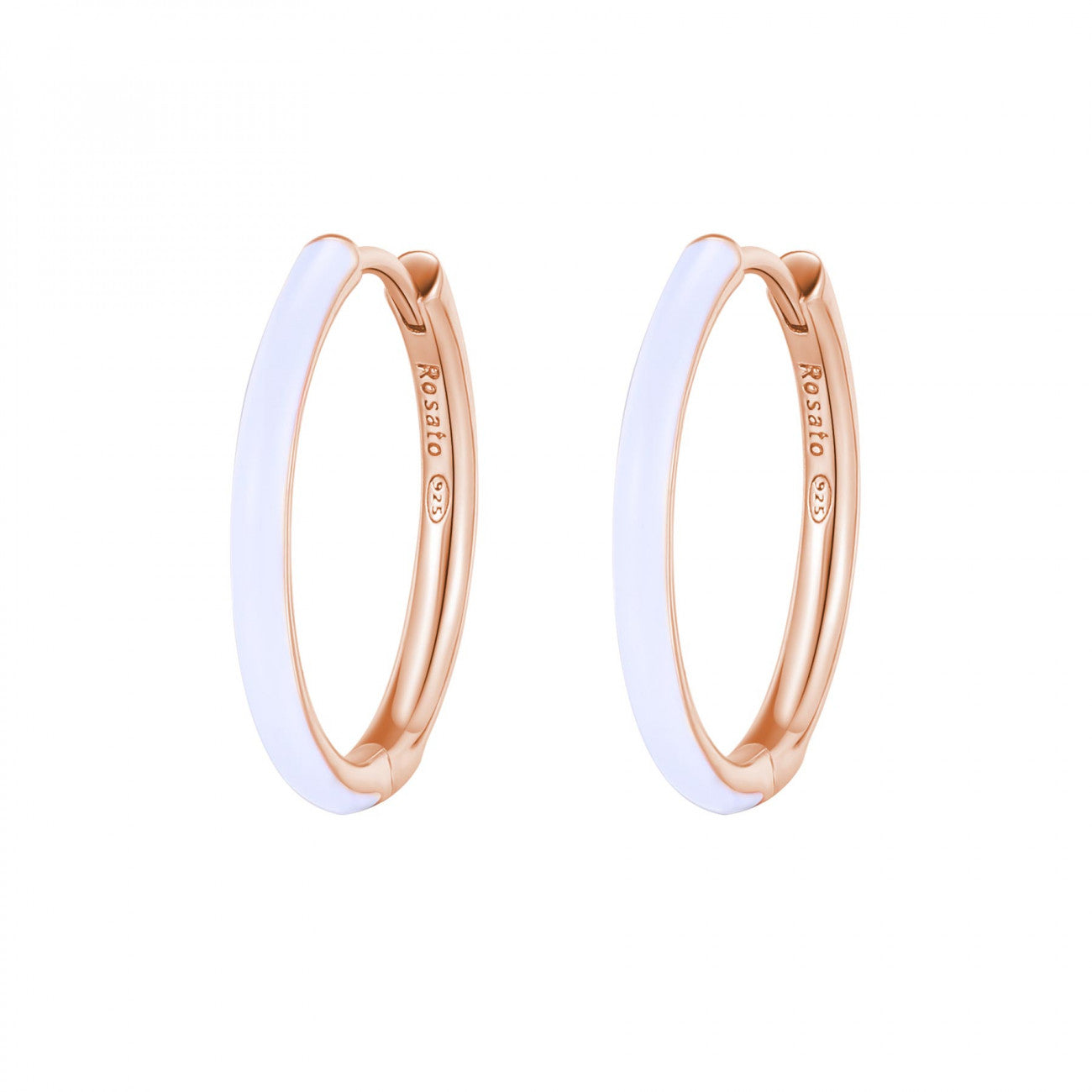 Rosato collezione Storie coppia orecchini cerchietto in Argento 925 rosa con smalto bianco.