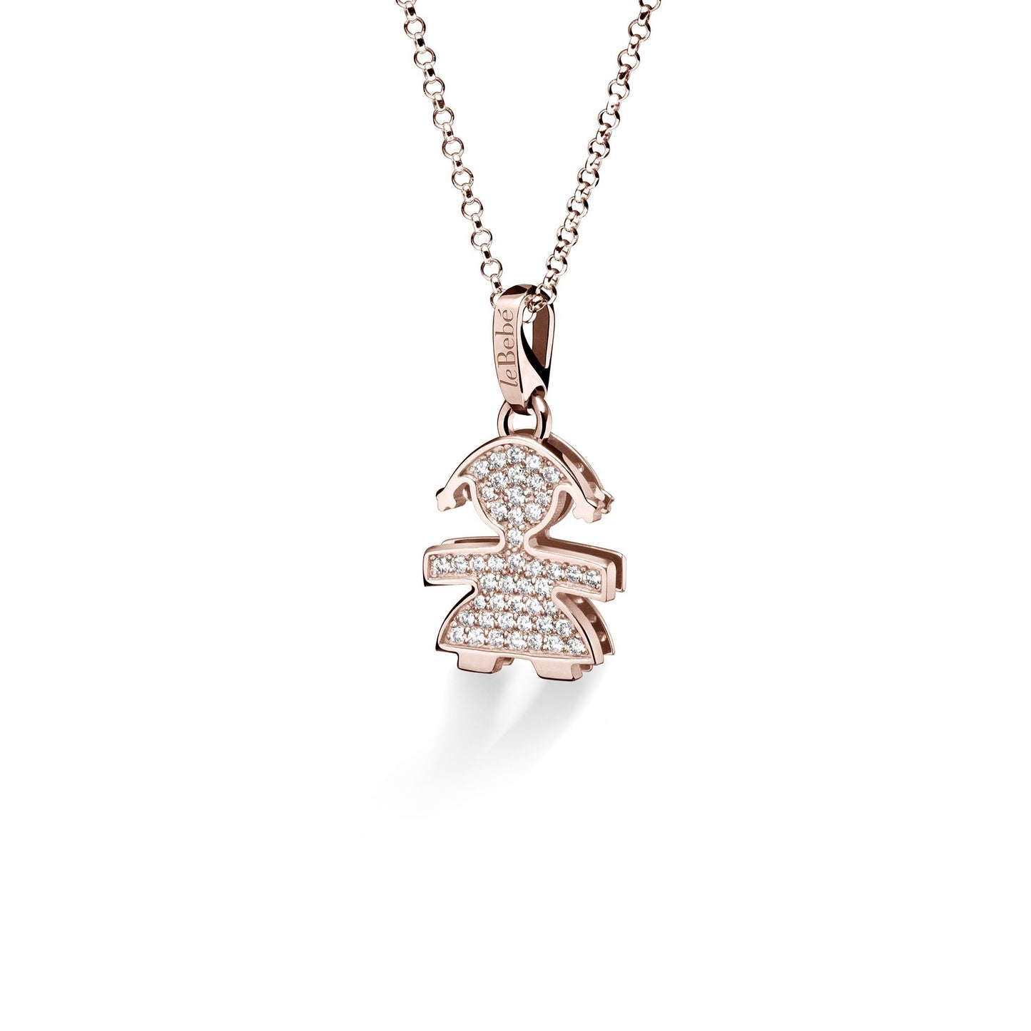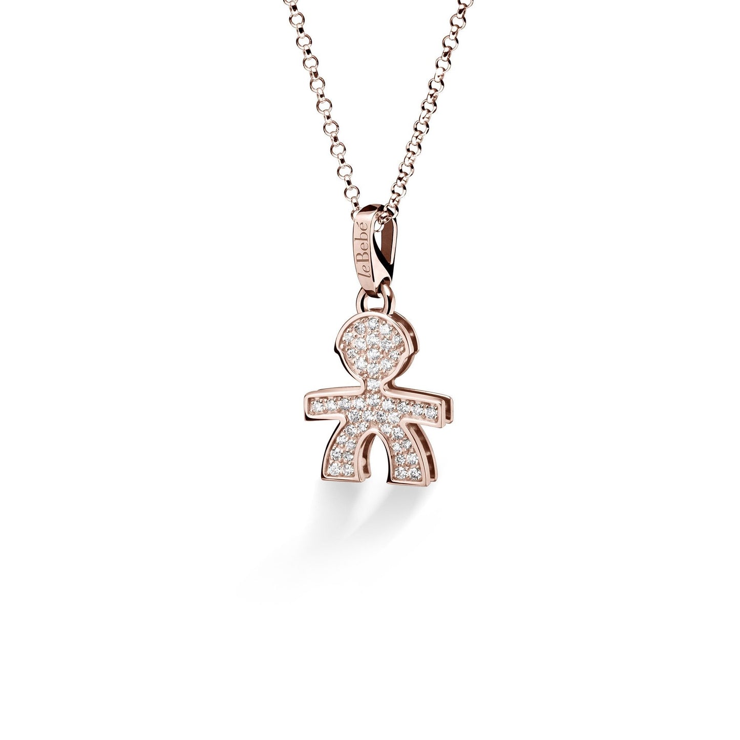 Ciondolo con collana LeBebé collezione I Preziosi in oro con sagoma di bimbo/bimba e pavé di diamanti. I Pavé Piccoli