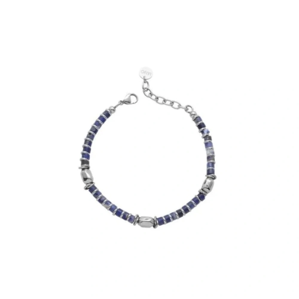 Bracciale in acciaio, impreziosito da pietre colorate che aggiungono luminosità e carattere. Un equilibrio raffinato tra eleganza e vivacità contemporanea.
