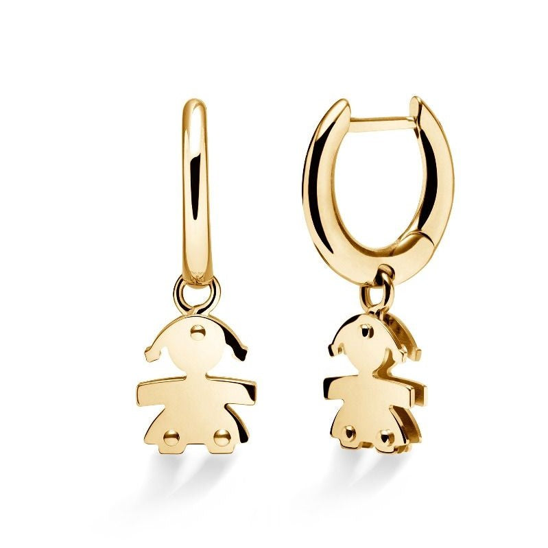 Orecchini pendenti LeBebé collezione i Mini in oro con sagoma di bimbo o bimba. Disponibile in coppia.