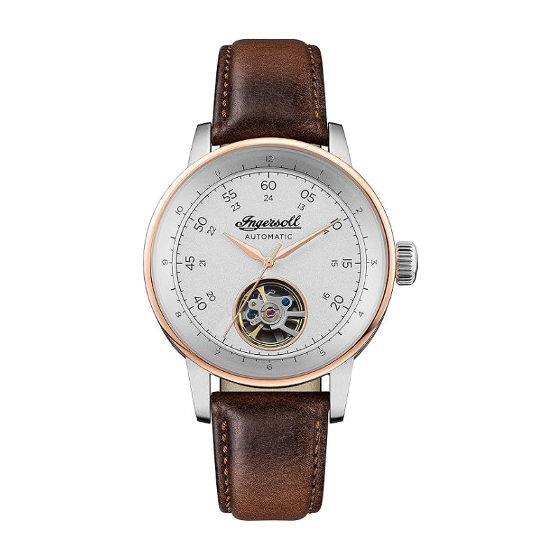 Orologio The Miles automatico, solo tempo con cassa in acciaio bicolore e cinta pelle marrone.
